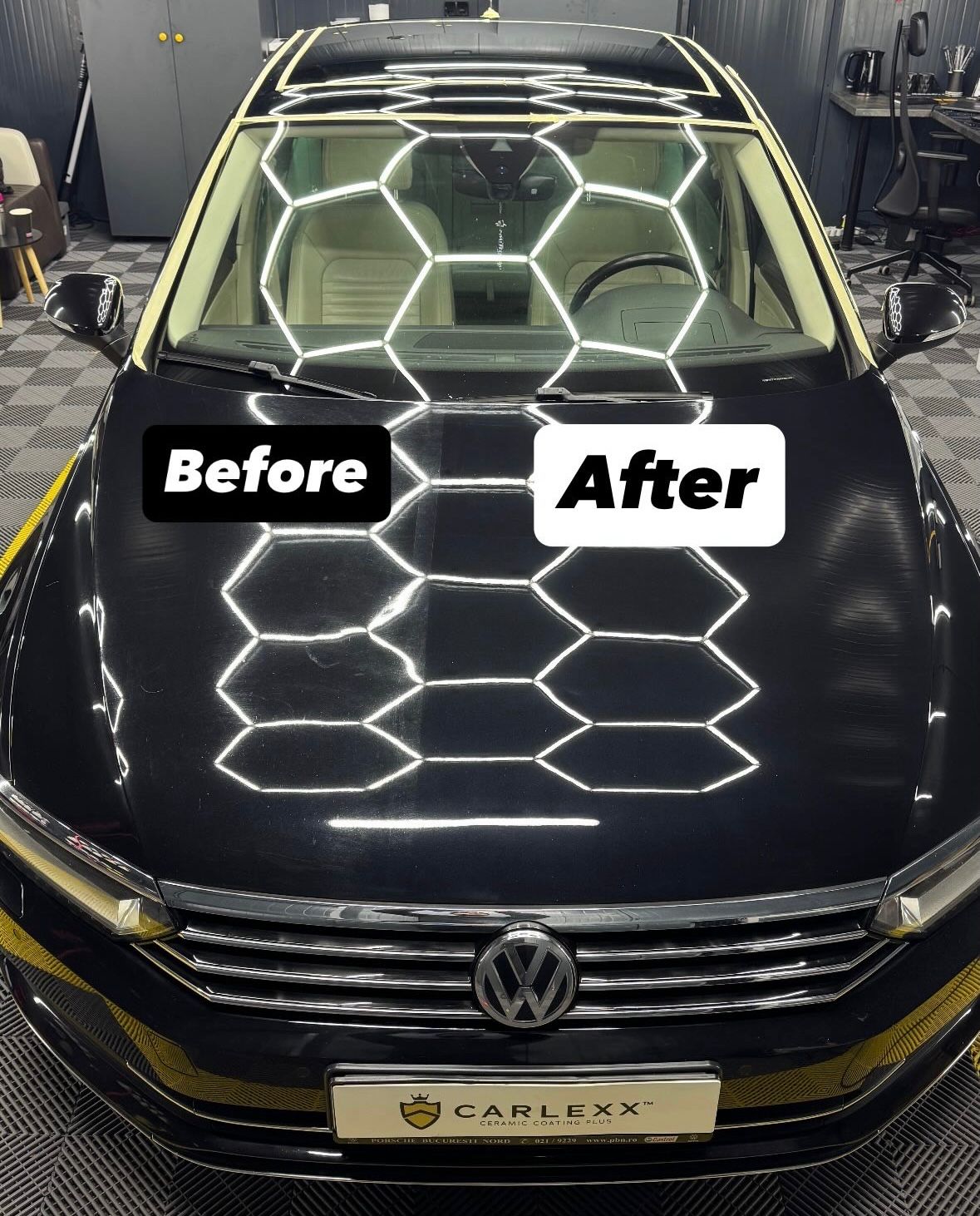 După polish, caroseria este protejată cu ceară solidă, cu durabilitate de 3–4 luni.