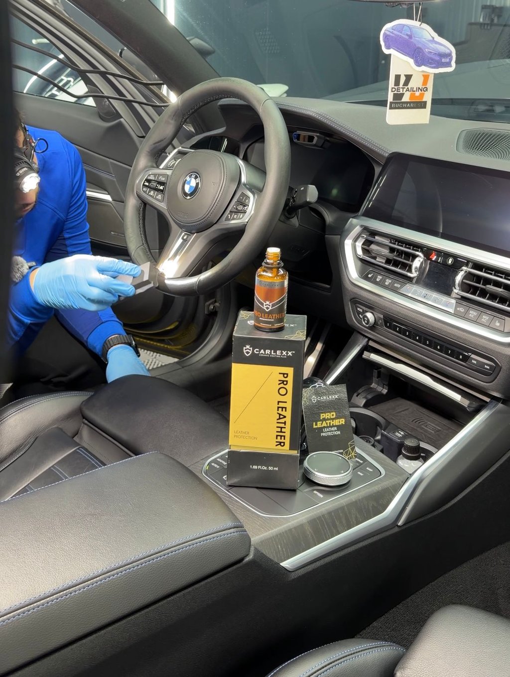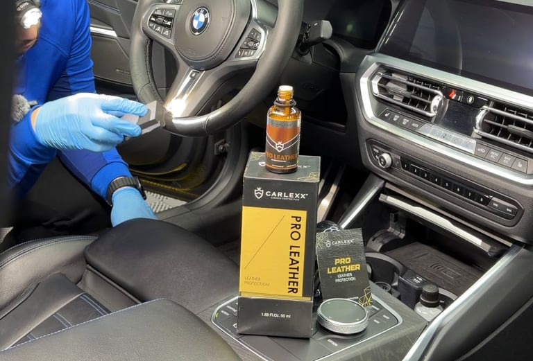 Aplicare tratament ceramic special pentru piele auto marca Carlexx ProLeather